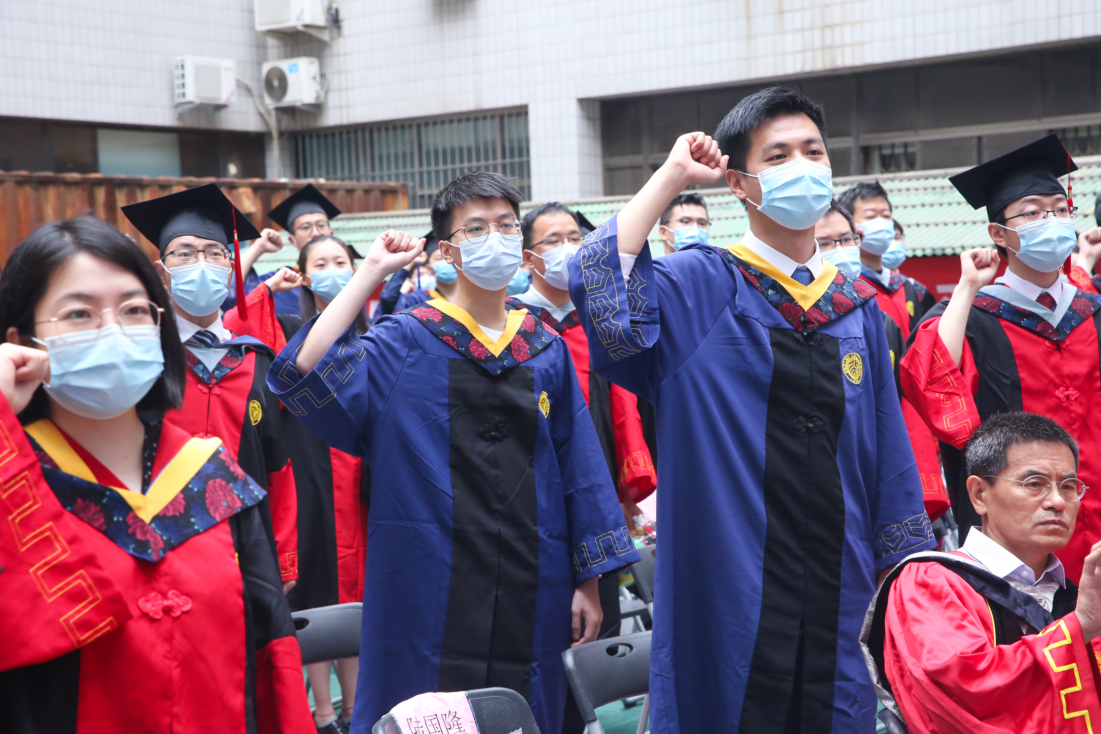 副院长张进江、何建森分别宣读了本科毕业生与研究生毕业生名单,在现场的同学被念到名字时都大声回答“到!”,在线上的同学则通过聊天框发出“到!”,通过这一具有仪式感的环节,同学们线上线下再次同步集结,整装待发。