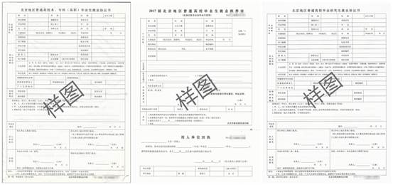 (从左至右依次是《北京地区普通高校本、专科(高职)毕业生就业协议书》、《北京地区普通高校毕业生就业推荐表》、《北京地区普通高校毕业研究生就业协议书》)